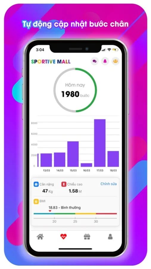 Ứng dụng Sportive Mall là một ứng dụng sức khoẻ (Health App) , ứng dụng có tích hợp với ứng dụng Apple sức khoẻ ( Apple’s Health app )