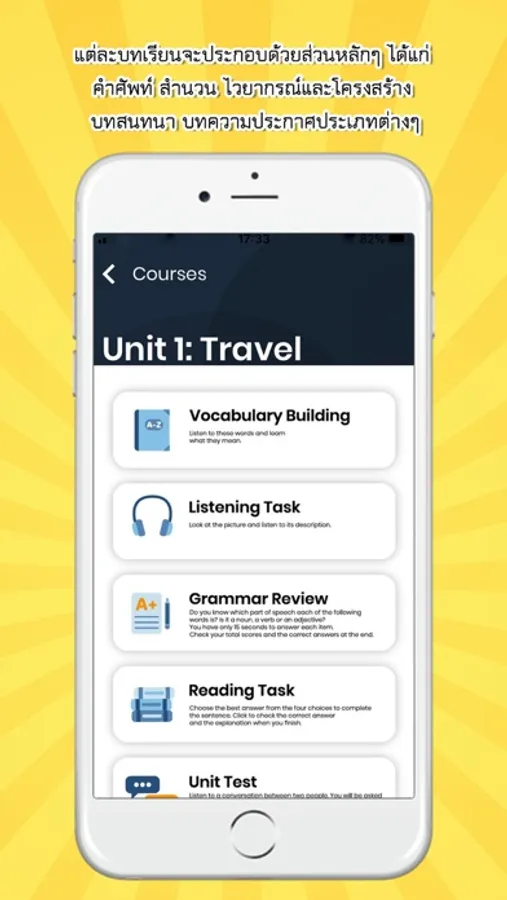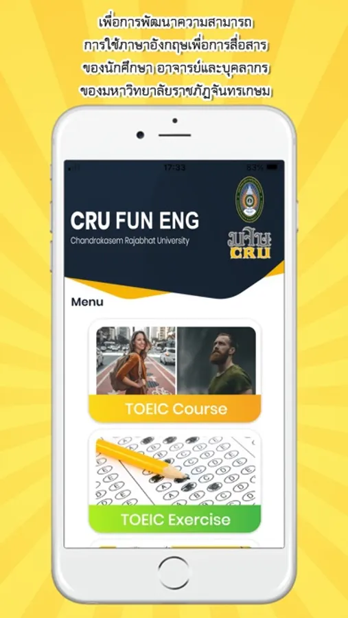 Application นี้ สร้างขึ้นเพื่อการเรียนภาษาอังกฤษ เป็นบทเรียนแอปพลิเคชั่นที่ออกแบบมาโดยอ้างอิงเนื้อหาของข้อสอบ New TOEIC เพื่อการพัฒนาความสามารถในการใช้ภาษาอังกฤษเพื่อการสื่อสารของนักศึกษา อาจารย์และบุคลากรของมหาวิทยาลัยราชภัฏจันทรเกษม มีจำนวน 10 บทเรียน แต่ละบทเรียนจะประกอบด้วยส่วนหลักๆ ได้แก่ คำศัพท์ สำนวน ไวยากรณ์และโครงสร้าง บทสนทนา บทความประกาศประเภทต่างๆ ทั้งสั้นและยาว รวมทั้งมีการสอดแทรกส่วนย่อยๆ ของเทคนิคการเรียนต่างๆ เพื่อพัฒนาทักษะทางภาษาทั้ง 4 ด้าน (ฟัง พูด อ่าน เขียน ของผู้เรียน)