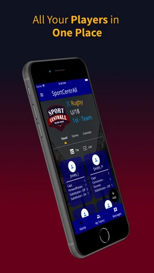 TEAM COACH / MANAGER: Create your squads, select your match day team, record stats on your teams and players. Monitor team and player performance and use real data to develop your teams and players over time.