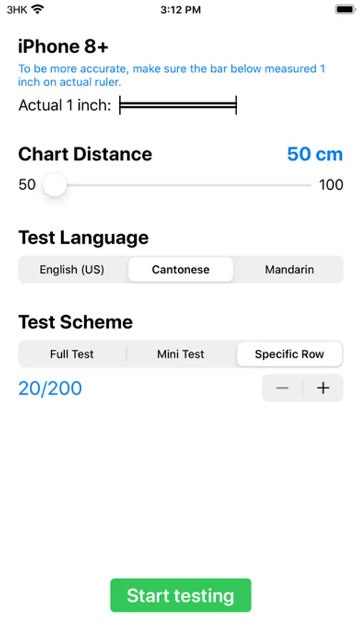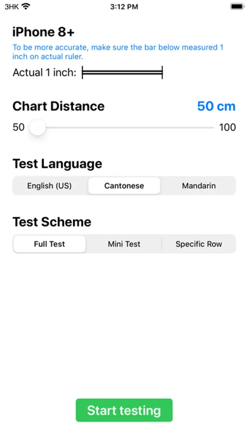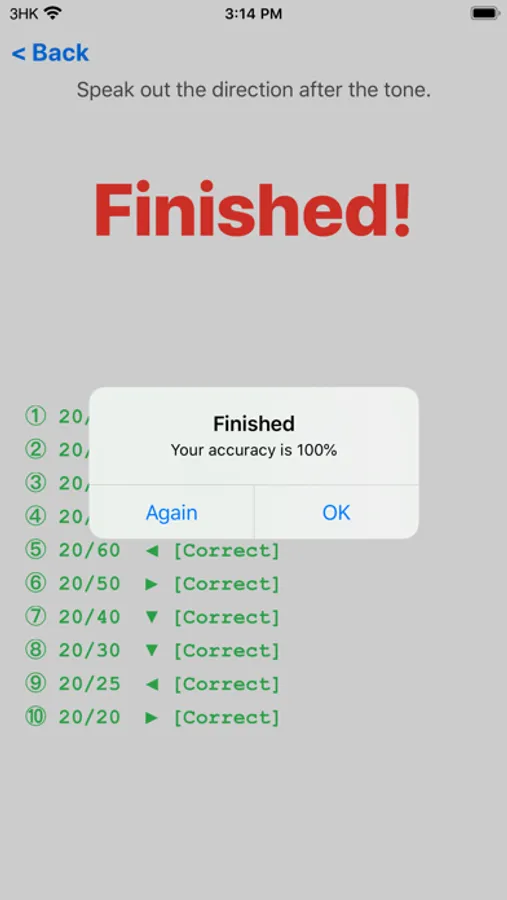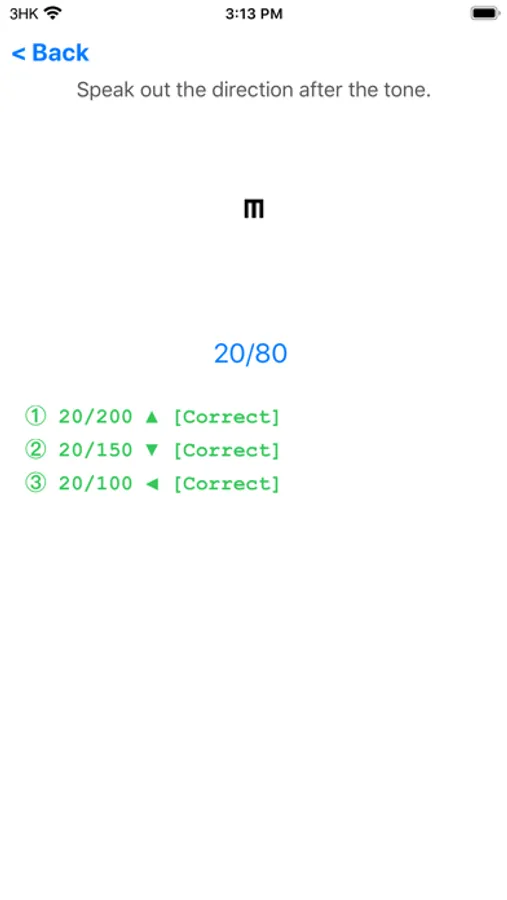 E-Y-E-Check simulates tumbling 'E' for testing visual acuity. In general, you cover one of your eyes and hold/place your phone 50cm to 100cm (user specified) from your non-covered eye. Each time a letter 'E' will appear on screen in a direction picked out from 'left', 'right', 'up' and 'down' randomly. Within 10 seconds, you read out the 'E' direction in the language selected previously, English, Chinese Mandarin or Cantonese, and you will know whether you are correct or wrong.