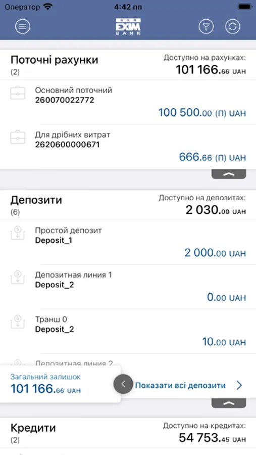 • View information on deposits and loans of your company