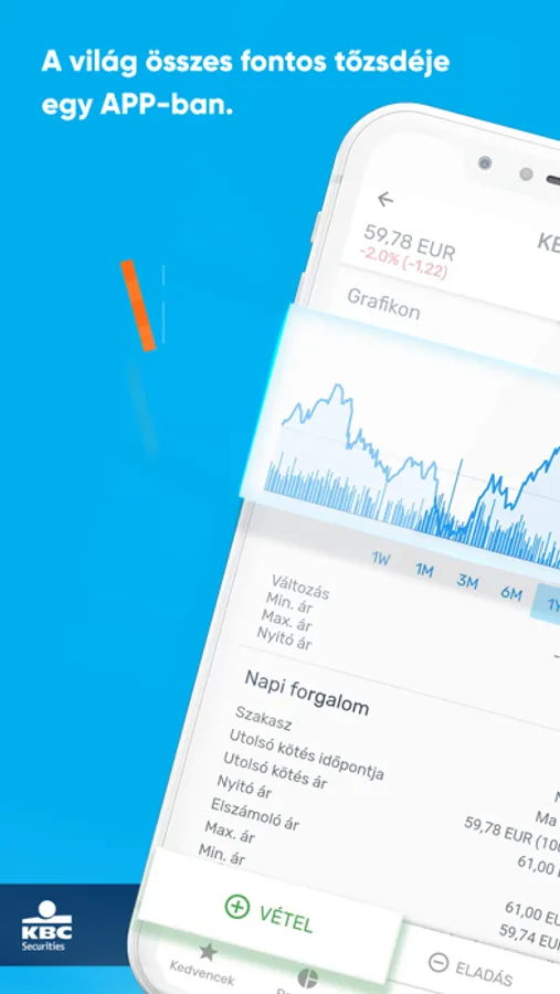 Olyan szolgáltatót válasszon, ahol széles termékkörrel kereskedhet! A KBC Equitas platformján több mint 10.000 termék érhető el. Többek között magyar, amerikai és német részvények, ETF-ek, befektetési alapok és certifikátok.
