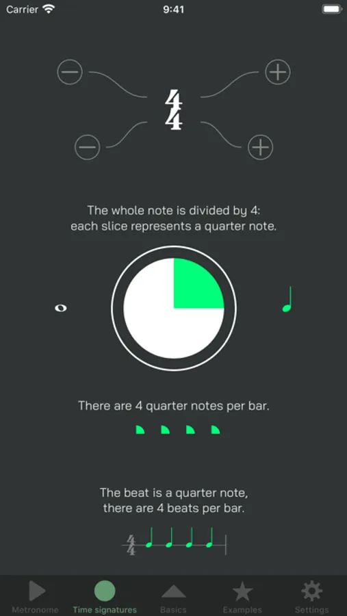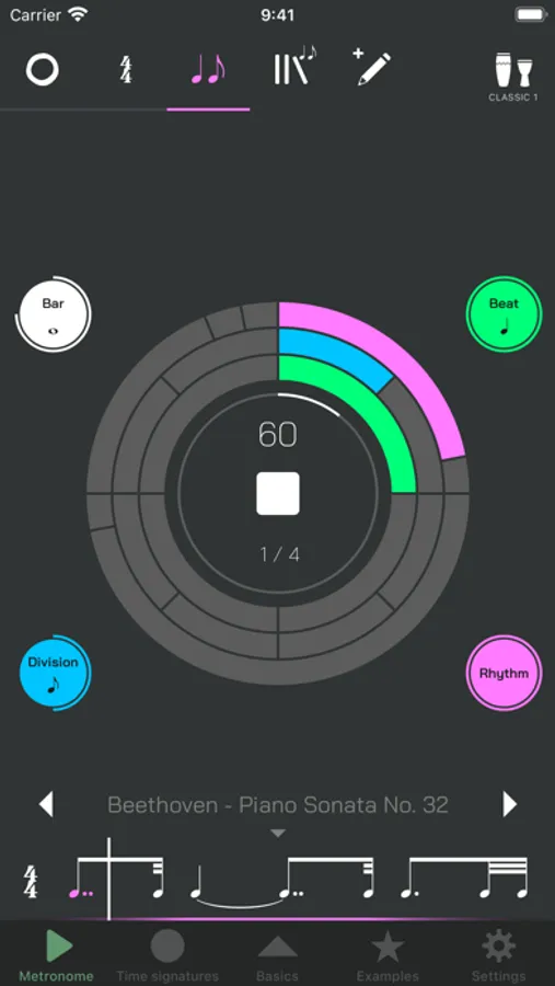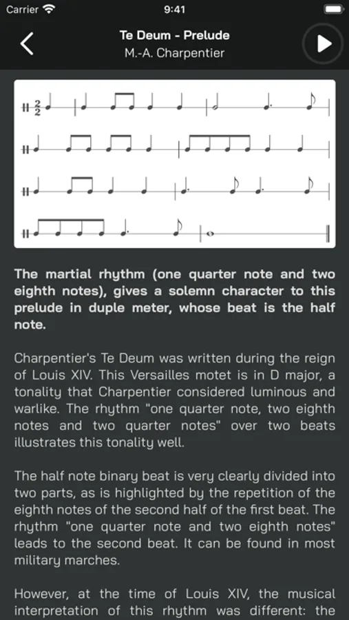 With the Pro Version (in-app purchase), replay the rhythms you saved in the library and access more than 150 exercises, dozens of examples and musical excerpts that complement the course.