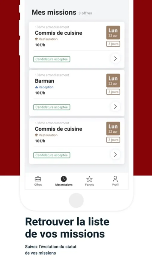- Inscrivez-vous gratuitement en quelques clics et recevez des propositions de mission sur votre mobile
