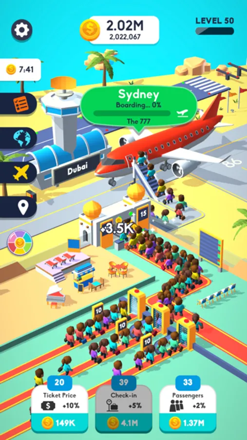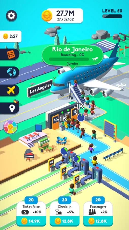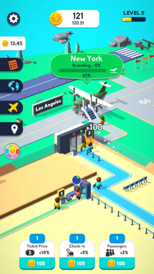 You can also start new terminals for planes and new airports. If you go into idle mode: don't worry, you'll still make money while idle.