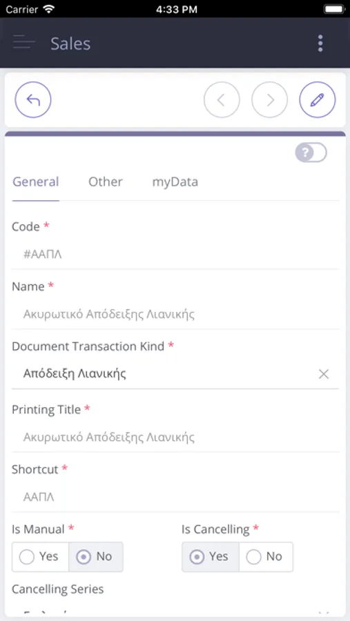 -- Αυτόματη Σύνδεση με την πλατφόρμα myData της Α.Α.Δ.Ε.