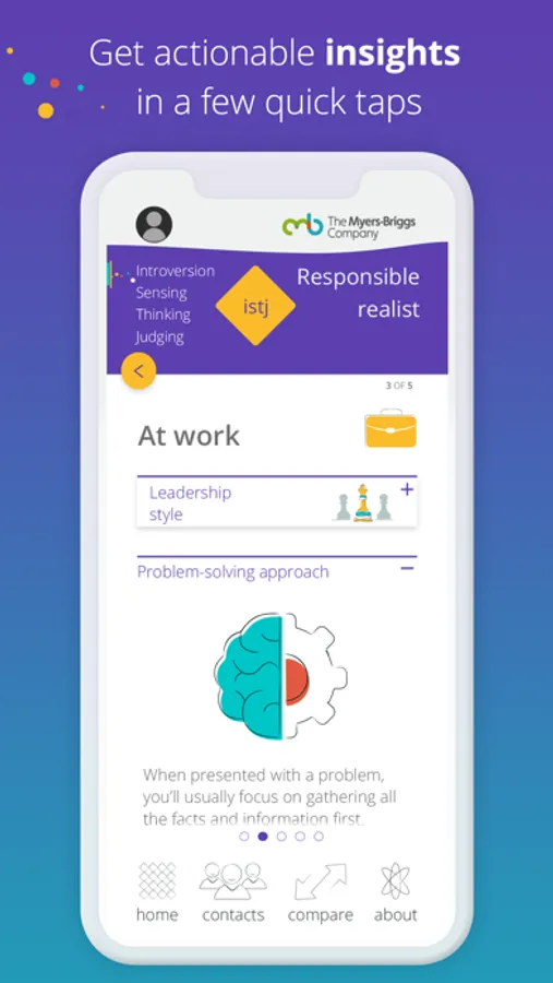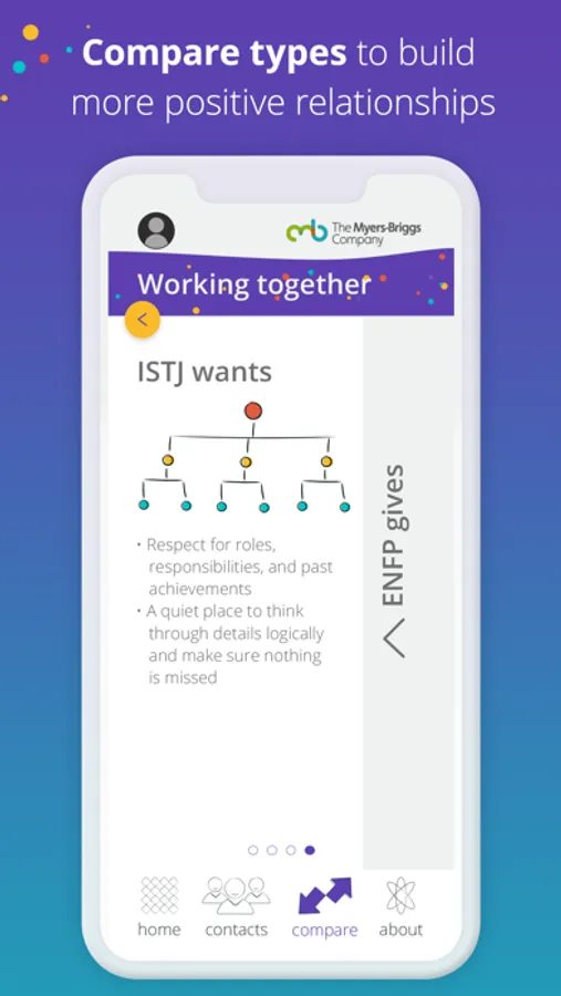 With the official Myers-Briggs app on your phone, you’ve got immediate access to MBTI type information. And that makes it easy to apply and use type in everyday situations.