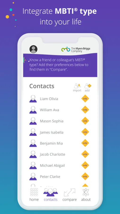 Store your contacts’ MBTI types in the app for instant access to type information when you need it. It becomes personal, real, relevant—and that makes it so much more useful.