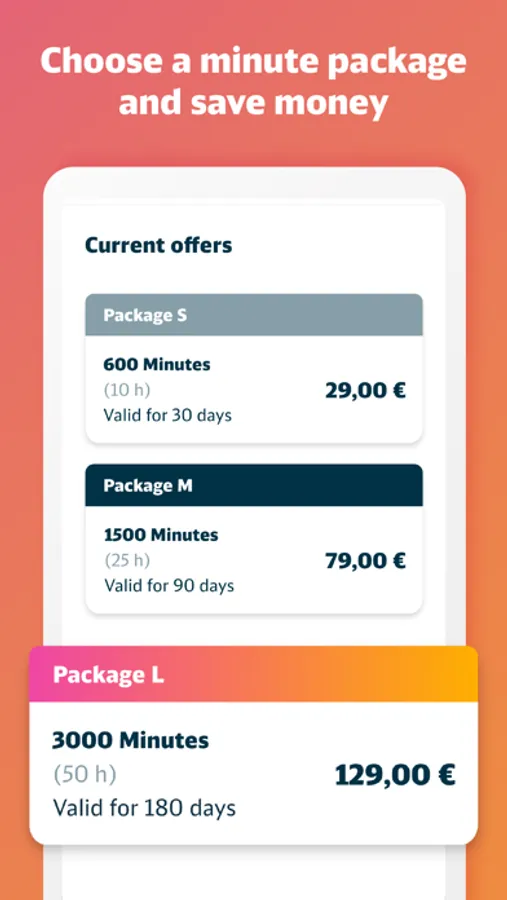 • Minute Packages: The minute packages for the Minute Seats. Buy one of the possible minute bundles with a fixed duration prior to your visit and check in via the app. The activated minutes from your bought Bundles are automatically used at check-out and deducted from your Minute Bundles credit.