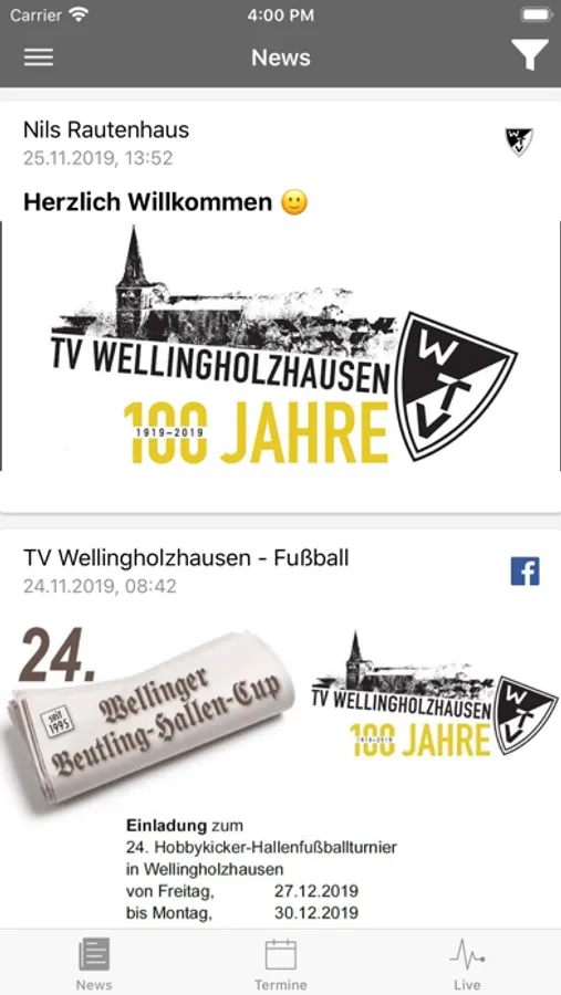 Durch die Einbindung sozialer Netzwerke kannst du das Geschehen im Verein brandaktuell mitverfolgen.