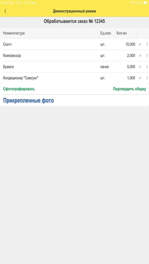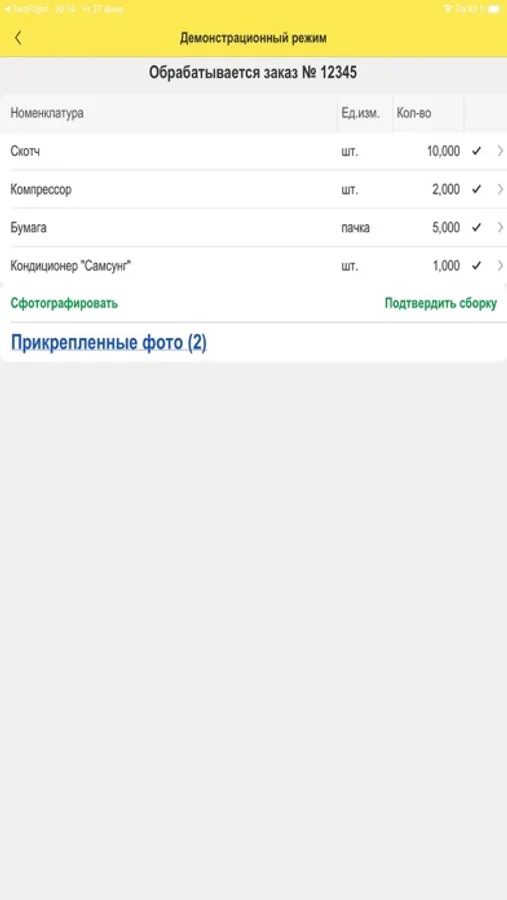 - Загрузка содержания заказа по штрих-коду или по номеру.