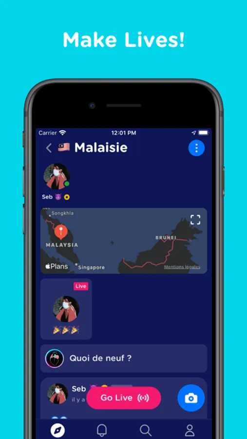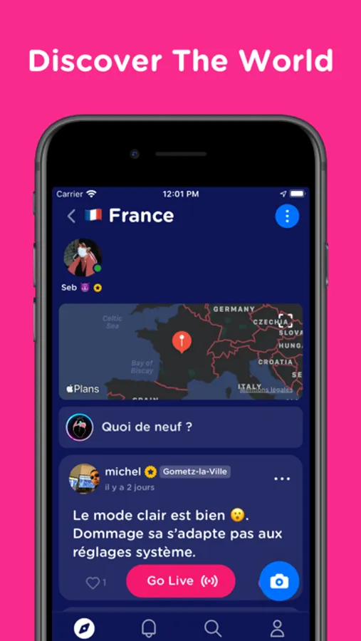 Go Live, Answer questions, and Chat with people in other countries