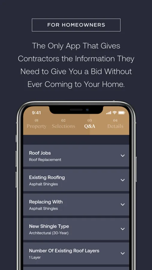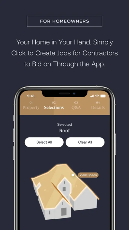 With your own built-in 3D model, click and create jobs with ease. Fairmarket's patented technology calculates all of the specific measurements on your home that contractors need to prepare a bid. The app walks you through a quick survey that gives contractors the information they need to give you a bid through the app.