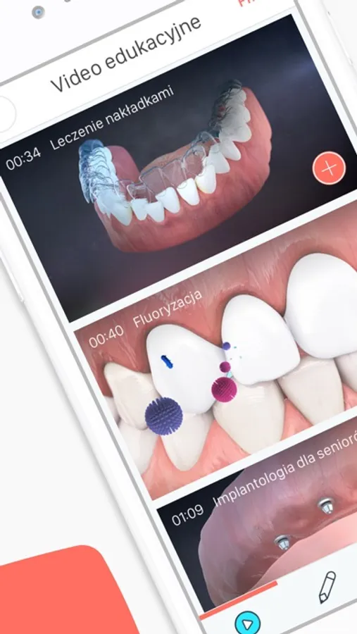 Aplikacja daje dostęp do ponad 250 gotowych i profesjonalnych filmów video, edukacyjnych animacji 3D oraz edytowalnych szablonów dedykowanych stomatologii zarówno w układzie poziomym jak i pionowym.