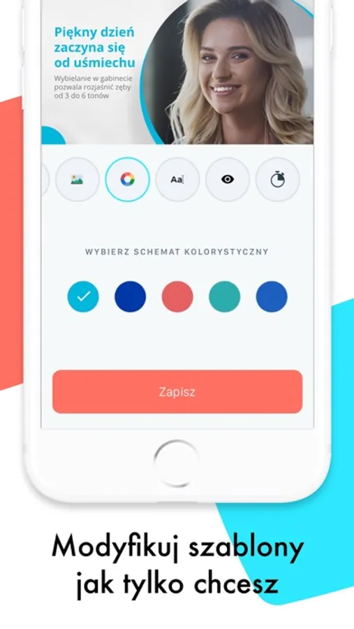 Każdy szablon zawiera przykładowe treści, które można dowolnie edytować poprzez wprowadzenie autorskich tekstów oraz grafik, zmianę wielkości fontów oraz kolorystyki wybranych elementów.