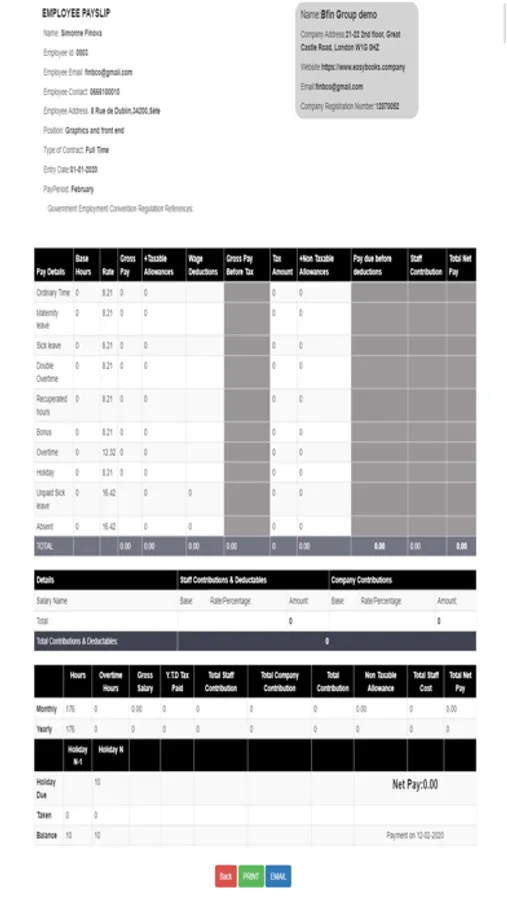 The app allows access to your EasyBooks payroll cloud account. Best featured universal payroll: Multi language, universally adaptive and dedicated to your country regulations, automotive once initial data is processed to staff(s) accounts, email or digitally send payroll reports to your local government office. Payroll products available for micro businesses, sole trader, freelancer to SME businesses, Create staff