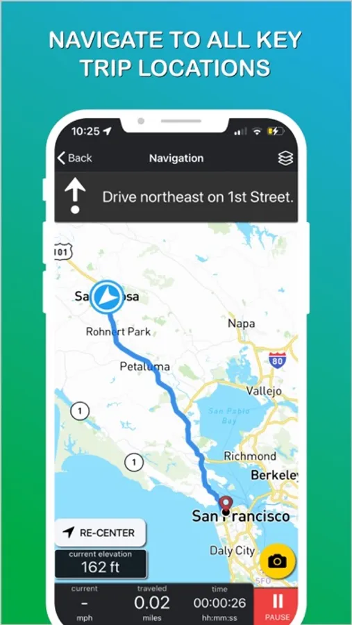While on your trip, just click the icon for the activity or location you need to get to and navigate there via turn-by-turn voice command.