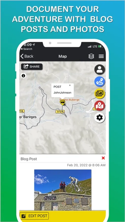 Plan your trip on your phone or computer, load your cycling and hiking routes and all important points of interest onto the interactive map, and never get lost as you travel from point to point on your entire trip. Still on your Interactive Map Trip Page, blog and share photos with friends, and keep track of and communicate with those on your trip. Invite your family and friends to follow and share in your adventure, seeing your location and what you have accomplished in real time. And, quickly find and navigate to and up PJAMM Cycling bike climbs near you.