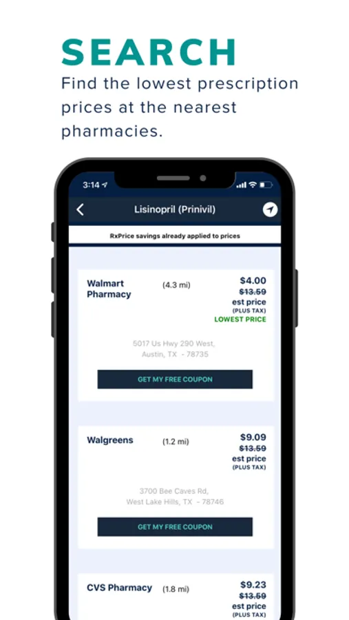 Use the RxPrice app to: