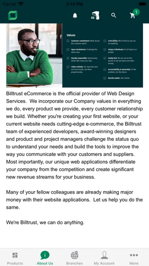 The Billtrust eCommerce native mobile app is built specifically for wholesale distributors and manufacturers, and provides the same advanced B2B/B2C eCommerce capabilities as our desktop version on any iOS device, offering you: