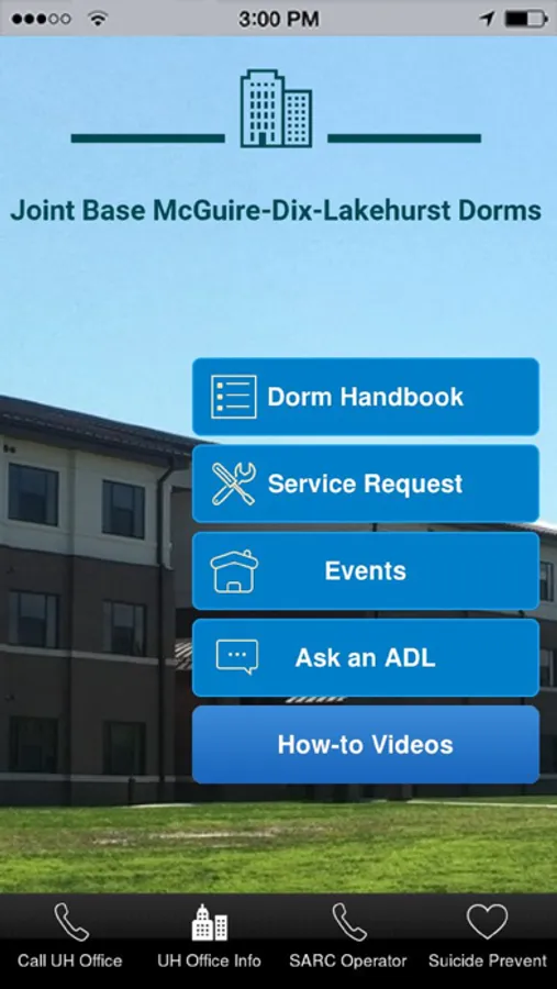 Two-way communication tool between dorm residents and Unaccompanied Housing Staff. Users are able to submit work orders, see upcoming events, access references regarding dorm regulations.