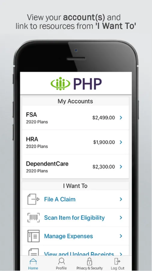 Save time and hassles while making the most of your FSA, HRA, and DCAP reimbursement accounts by quickly checking your balances and details. Our secure app makes managing your accounts easy through real-time access and intuitive navigation to all your important account information on the go! Powerful features of the app include: