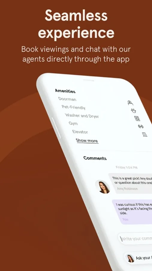 In-app communication and Agent’s Picks. Launch a chat with your agent and see their newest recommendations via the app’s interface.