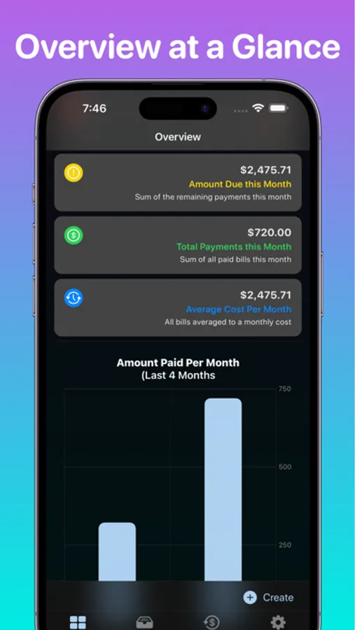 See, track, and record payments for your upcoming Bills. Check out your recent payments and see how much money is due in the next week or month. Bills io tracks your average monthly cost for all bills.
