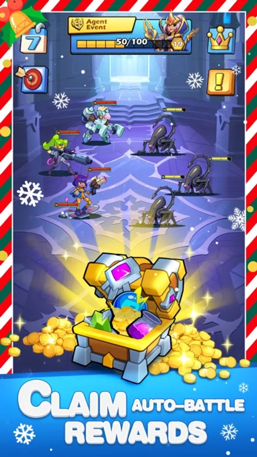 Send out your strongest team of agents, and they'll automatically fight for you and collect rewards including resources, epic equipment, and legendary agents, even while you're offline!