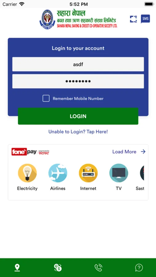 To be able to use this App, you first need to have a valid account maintained at Sahara Saving & Credit Co-Operative Ltd., and you need to subscribe to the Sahara Saving & Credit Co-Operative Ltd.'s Mobile Banking Service.