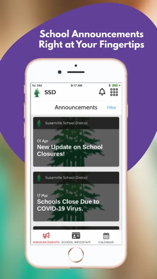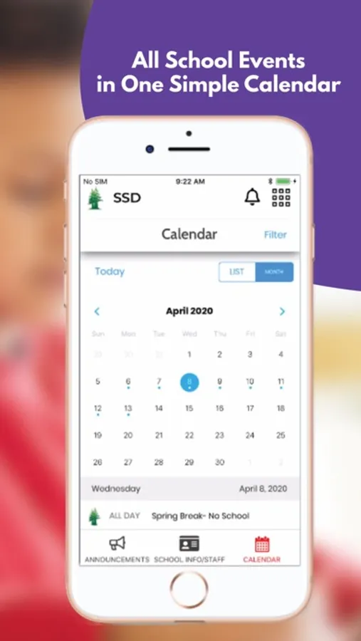The app includes information for the district and all schools. Filter by the school your child attends to feature information for that school.