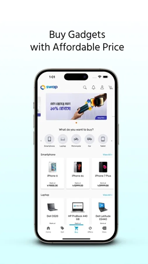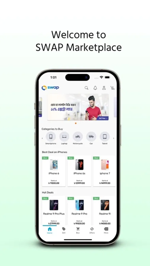 SWAP is one and only re-commerce model in Bangladesh which focuses on consumers earning cash at quickest possible time. SWAP is first ever C2B marketplace where consumers will be able to sell off their old products like phones, laptops, appliances, vehicles and others within 24 hours to our verified merchants. This not only helps eradicate the safety and security issue that customers face in C2C marketplace but also helps any person to encash unwanted stuff at the earliest possible time. The goal of SWAP is to give endless options to consumers. So when a consumer gets cash from his/her unwanted old stuff in SWAP, it automatically increases his/her purchasing power at that moment. This can be utilized to purchase from other offline stores, e-commerce or any marketplace. Happy swapping!