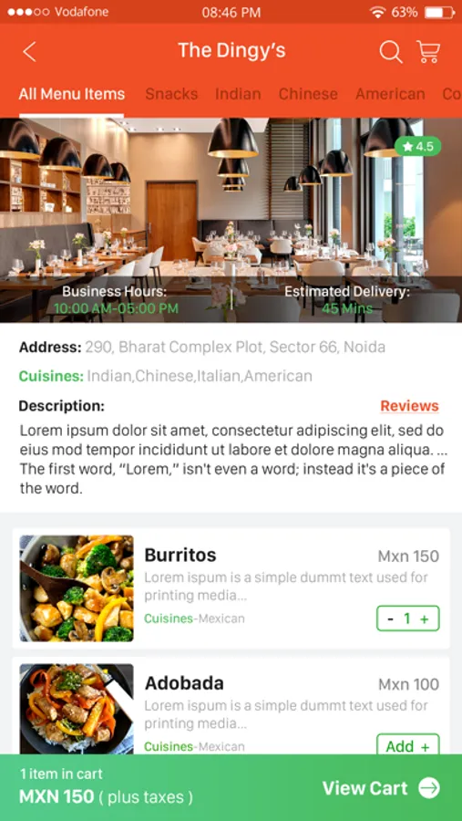 Eat Central te permite ordenar comida de tus restaurantes y cadenas favoritas de forma online, segura y rápida. Brindamos una aplicación móvil donde podrás ordenar tus platillos favoritos, realizar el pago de la forma más cómoda para ti, en efectivo al recibir tu orden o en línea por medio de tarjeta de crédito/débito, y ver en tiempo real el recorrido y tiempo de espera de tu pedido.