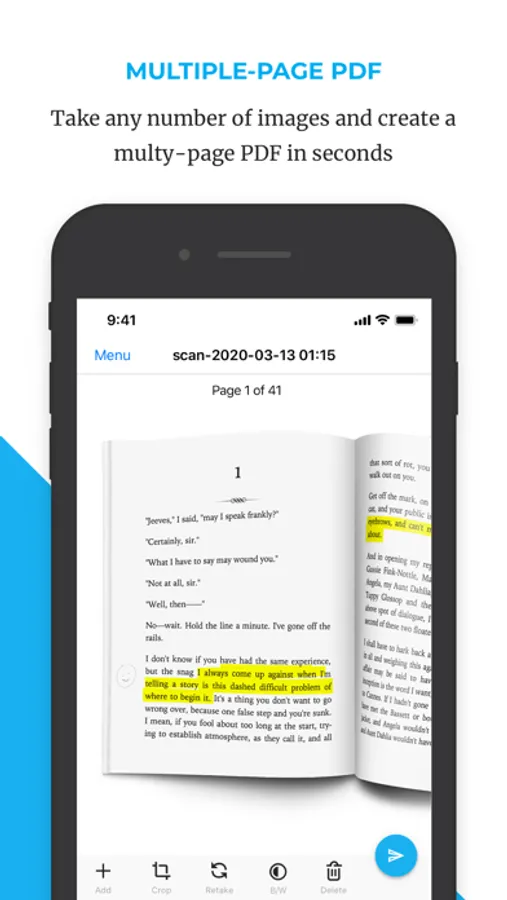 – Multi-page support to scan as many pages as you like into one PDF to share