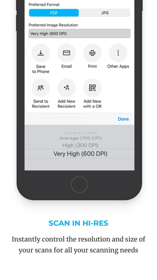 – Quickly scan and share PDFs or JPGs in 2 taps only