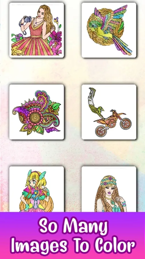 - Paint colorful animals, florals, houses, girl's images and bring pictures to life in a short time by coloring by numbers.