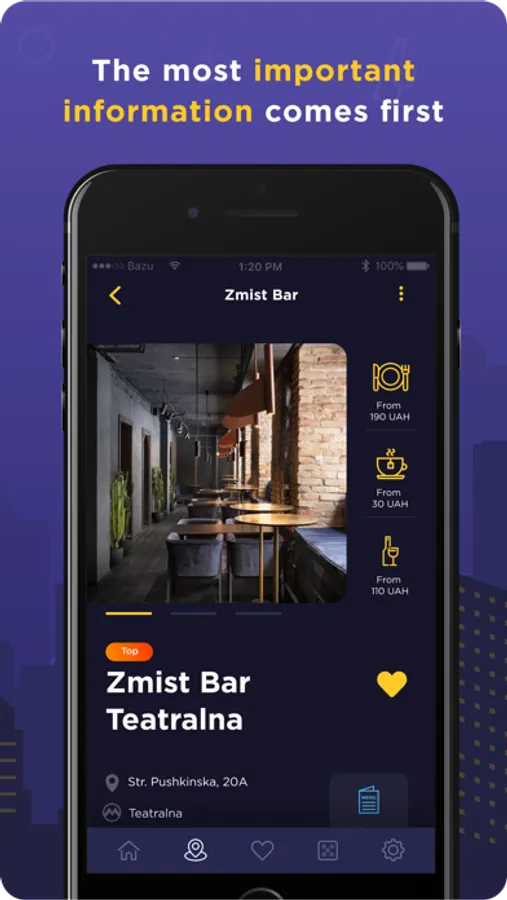 Let's App is allows users to easily and conveniently find information, location, current reviews of restaurants, bars, cafes, club places in your city.