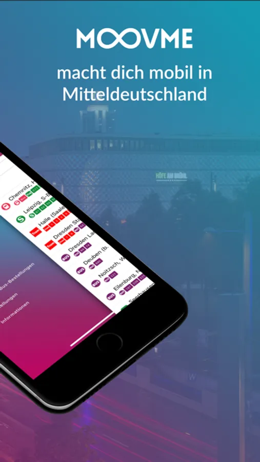 Whether from Halle to Zwickau, from Leipzig to Chemnitz or from Wittenberg to the Erzgebirge - MOOVME is your reliable travel companion in Central Germany. Get in now and get to your destination easily, reliably and relaxed.