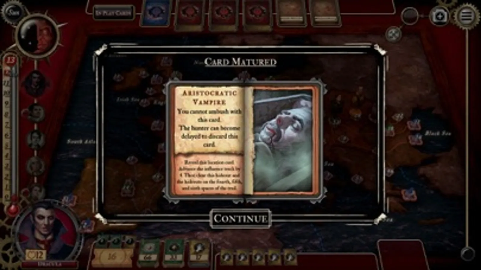 Once the hunters and Dracula finally clash, bloody and gruesome combat ensues. Nobody is safe as Dracula lashes out at his pursuers, and the hunters battle against the inhuman and immortal Count. Featuring a card-based combat system that rewards bluffing and tactical choices, no two clashes are the same.