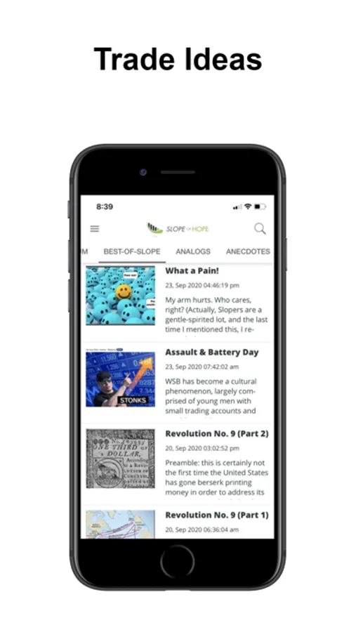 Since 2005, Slope has been the premier destination for technical analysis, trading ideas, charts, and discussion with all kinds of traders - - be they in stocks, futures, options, or just about anything else with a ticker symbol. Main features include: