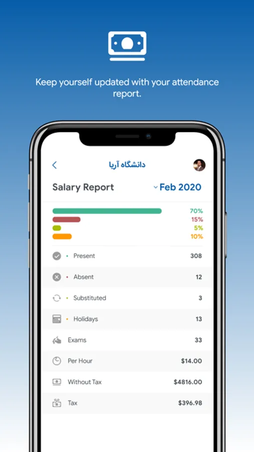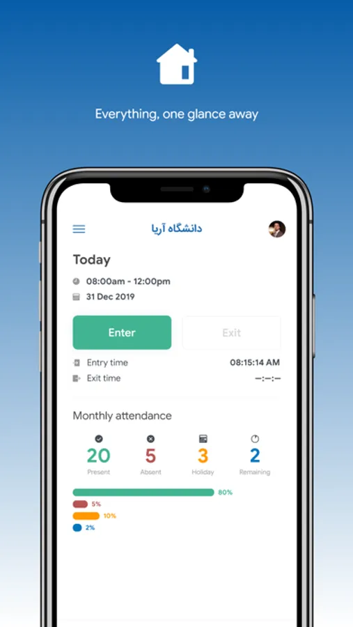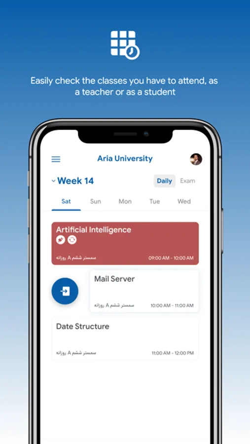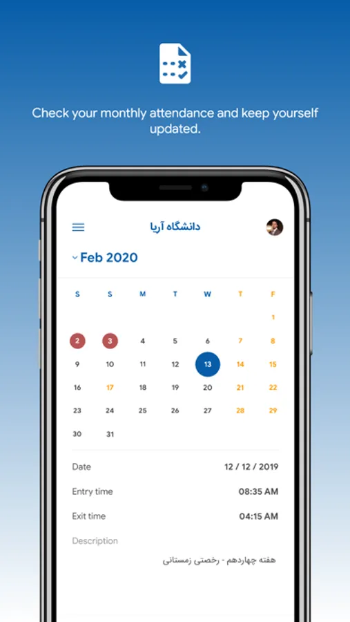 - Check-in and check-out of each lecture to record their attendance, while their location is at Aria University campus
