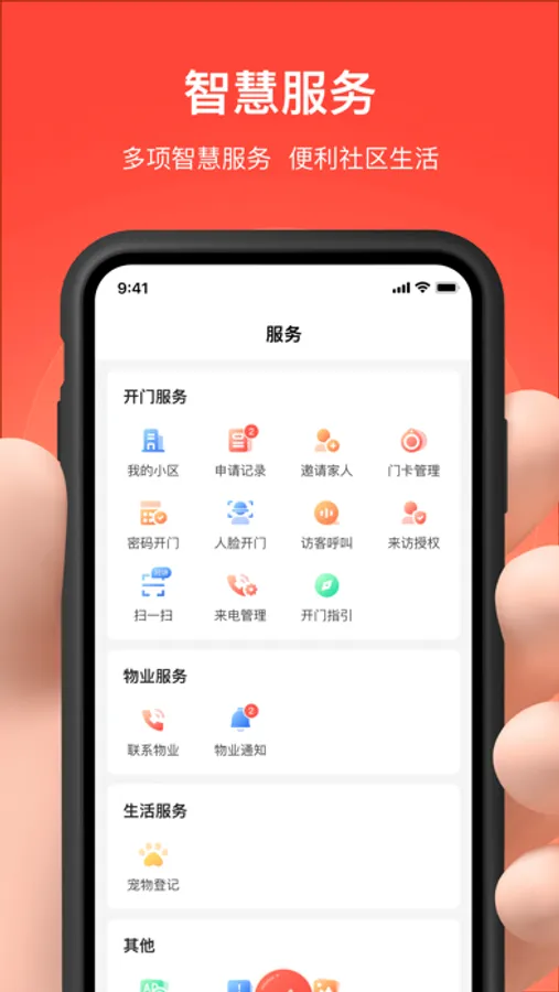 • 贴心:提供多样化生活服务,涵盖物业通知、宠物登记、来访授权、密码开门、门卡管理等,人性化设计超贴心。