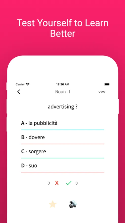 Flashcards: Dive into an interactive learning experience with beautifully designed flashcards. Master the pronunciation, spelling, and meaning of English and Italian words effortlessly. Swipe through cards and reinforce your memory through visual cues. we even include 2 example sentences to help you learn the words in context.
