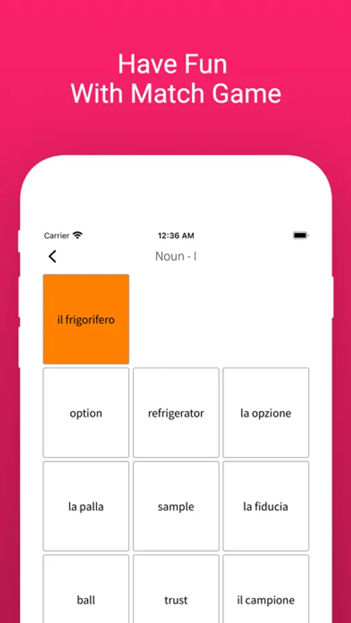 Match Game: Play an addictive matching game to strengthen your word recognition skills. Connect English words with their Italian translations. Sharpen your memory while having fun!