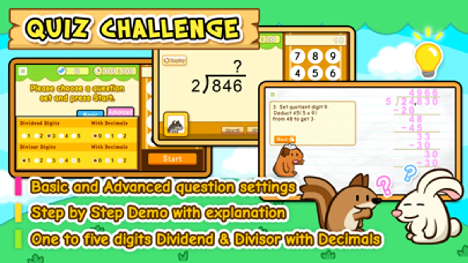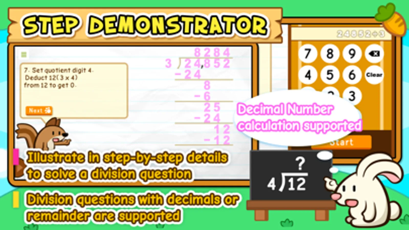 Division Trainer is designed specifically for children to master Division calculation through Games and customise own set of quiz and exercise.