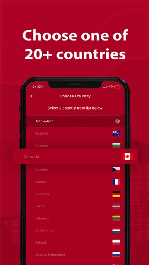 We have more than 500 server in 20+ countries that provide high-speed vnp connections. Select any country, connect to the server and enjoy professional appvpn.