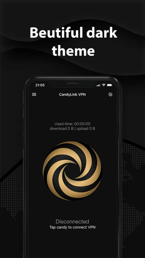 Connect a VPN with one touch. Just open the app and click the candy icon in the center of the screen. Wait a few seconds, and when the candy icon turns into a shield, you are connected to a V P N and your traffic is protected.
