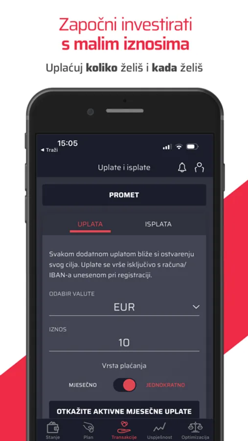 Najjednostavniji način investiranja je aktiviranje mjesečnih uplata. Genius vam na zadani datum šalje podsjetnik za uplatu, koji po želji možete i preskočiti.