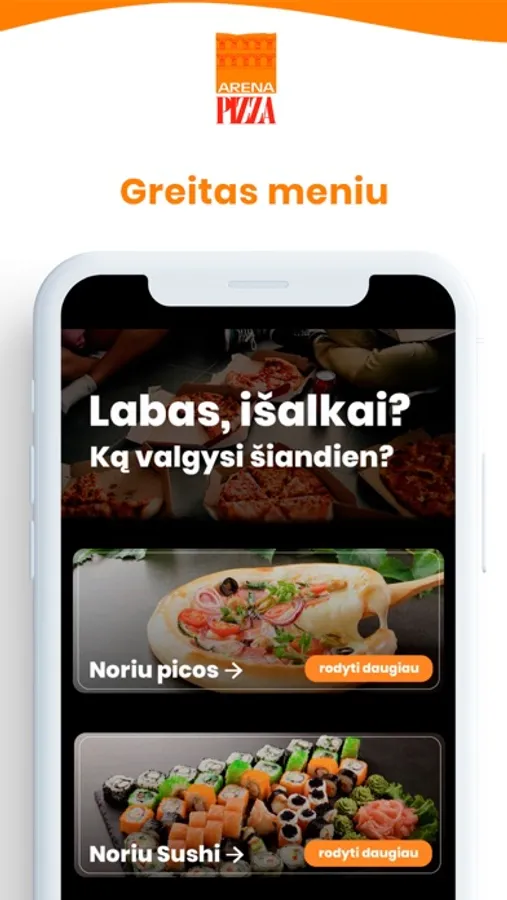Arena Pizza - daugiau nei 20 metų dirbanti picerija Kaune ir Klaipėdoje, kuri pamaitino tūkstančius žmonių, pristato jums savo mobilią aplikaciją, kurios dėka galėsite dar greičiau gauti maistą į namus ar biurą.