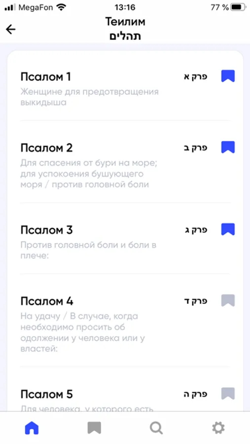 Фонд СТМЭГИ представляет приложение «Теилим STMEGI», позволяющее читать Псалмы Давида везде, где бы Вы не находились. Приложение доступно на русском языке и иврите. Для желающих читать на святом языке, но не знающих еврейские буквы, есть транслитерация. Также пользователь может регулировать размер шрифта и выбрать тему. В приложении доступна функция конвертера дат – пользователь имеет возможность посмотреть, какой день григорианского календаря соответствует дате по еврейскому календарю. Программа не требует подключения к интернету.